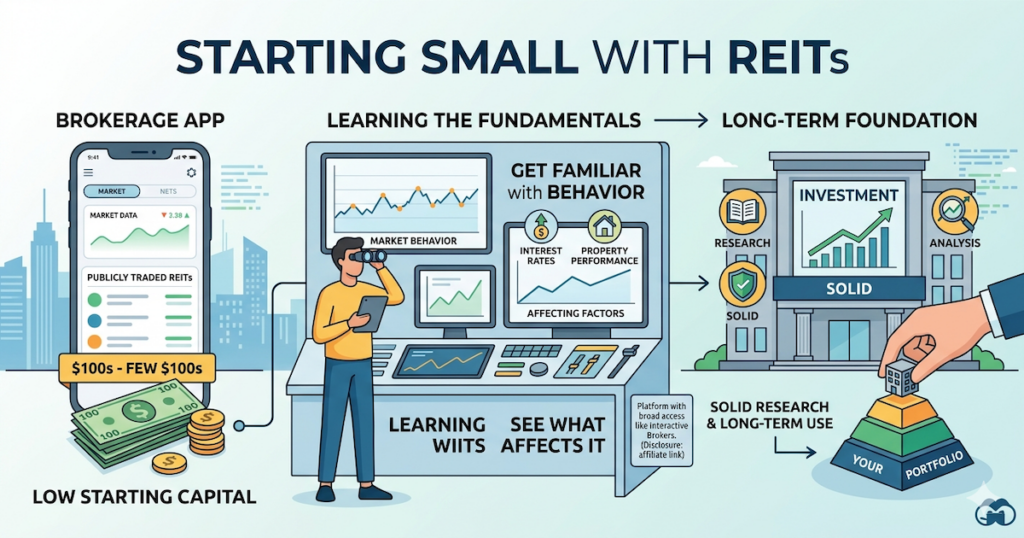 One of the more practical things about REITs is that you don’t need much to begin. A few hundred dollars can get you started on a platform that gives you access to publicly traded REITs or REIT-focused funds.