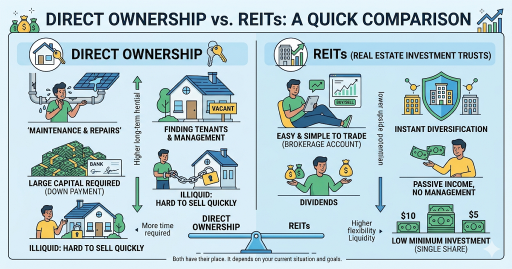 Not necessarily. REITs and property ownership aren’t really competing with each other. They serve different purposes.